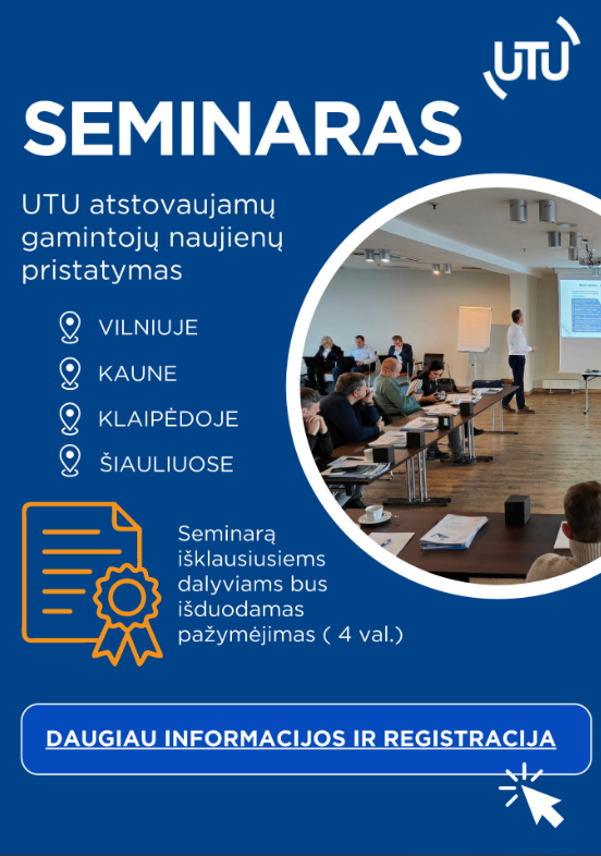 Kviečiame registruotis į UTU atstovaujamų gamintojų naujienų pristatymo seminarus Vilniuje, Kaune, Klaipėdoje ir Šiauliuose.
