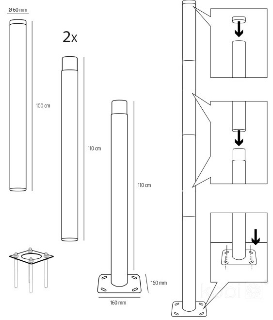 Atrama plieninė surenkama cilindro formos juoda 4m 60mm flanšinė be durelių