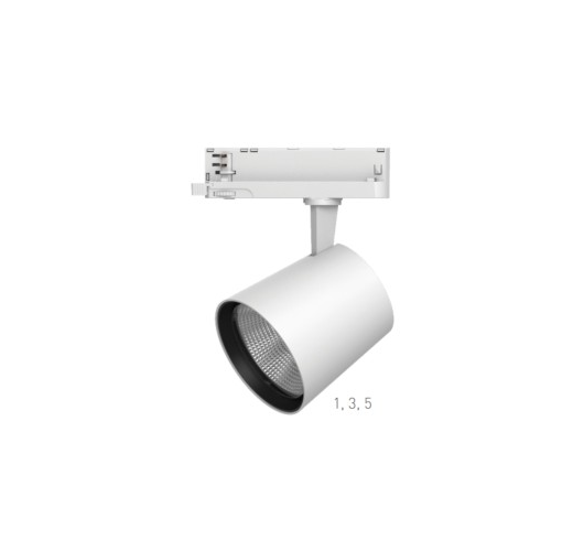 Šviestuvas bėgeliui šynolaidžiui Expo Track LED 30W 3000 lm CCT 60 laipsnių švietimo kampas. CRI90. baltas aliuminio korpusas. PF0,9. Šviesos spalva reguliuojama. Galia reguliuojama nuo 12,6 iki 30W