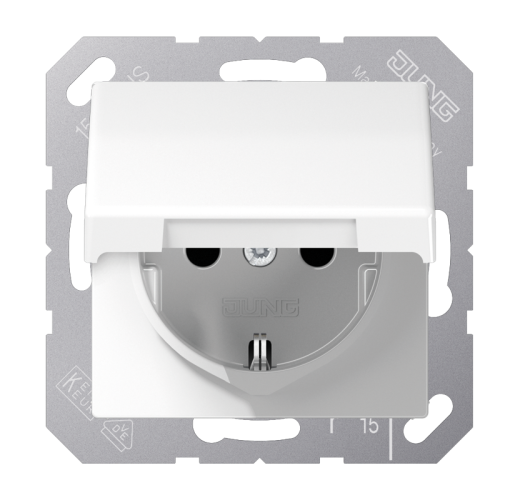 Kištukinis lizdas Jung LS, su įžeminimu, su dangteliu, IP44, baltas