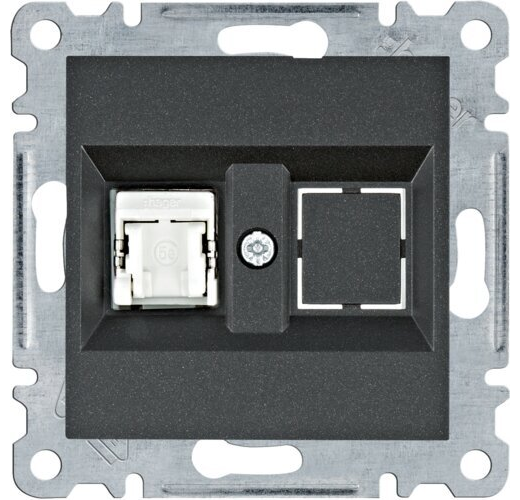 Kompiuterinis lizdas Hager Lumina Intense 2-jų lizdų 2xRJ45 cat5e UTP, su apsauga nuo dulkių, juodas matinis