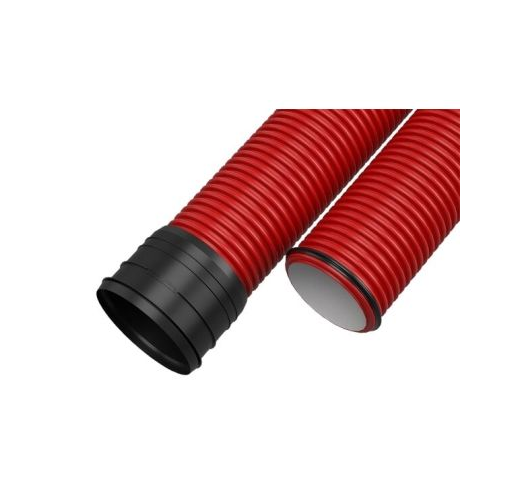 Raudonas gofruotas vamzdis 750N d110/6m. Skirtas kabeliams apsaugoti klojant po žeme. Ilgis 6 m.