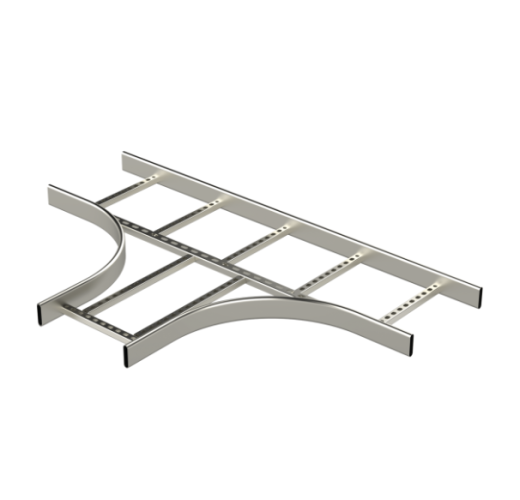 T formos detalės KST naudojamos T formos jungtims KS20-, KS60- ir KS80 tipo kabelių kopėčioms gaminti, kai to reikalauja kabelių lenkimo spindulys ar kiti poreikiai. KST vidinio spindulio parinktys yra R=300 mm, R=600 mm ir R=1000 mm.