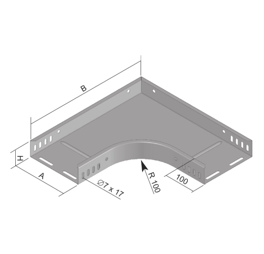 Kabelinio lovio alkūnė 90X60X100 S horizontalus posūkis 90° šalto cinkavimo