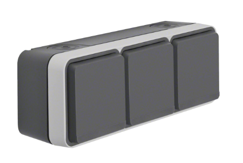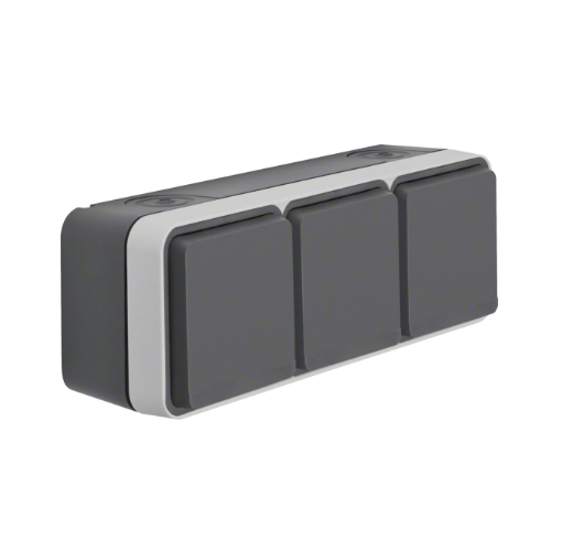 Kištukinis lizdas 3 lizdų, su dangteliu IP55 pilkas W.1