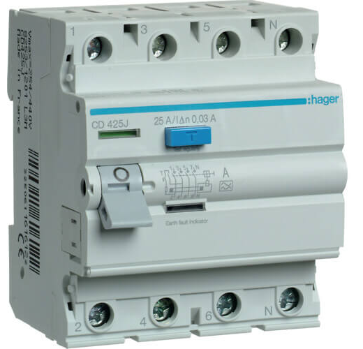 Srovės nuotėkio relė CD426J 4P 25A 30mA