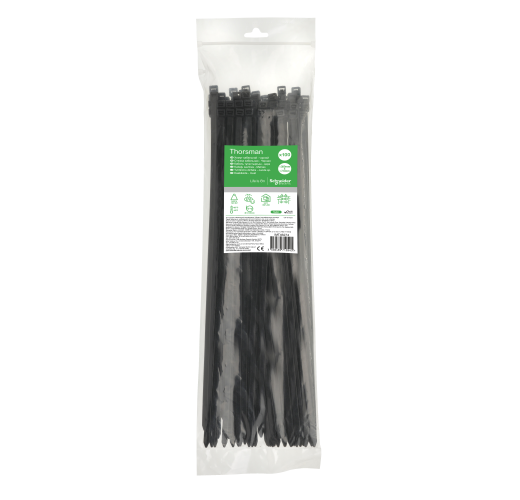 Kabelių dirželiai 300x7,6 mm juodi (UV) užtikrina patikimą, ilgaamžį ir tvarkingą kabelių tvirtinimą, taip apsaugodami laidus nuo aplinkos poveikio ir padedant išlaikyti organizuotą ir saugų kabelių išdėstymą.